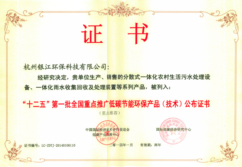 十二五第一批全國重點(diǎn)推廣低碳節(jié)能環(huán)保產(chǎn)品(技術(shù))公布證書