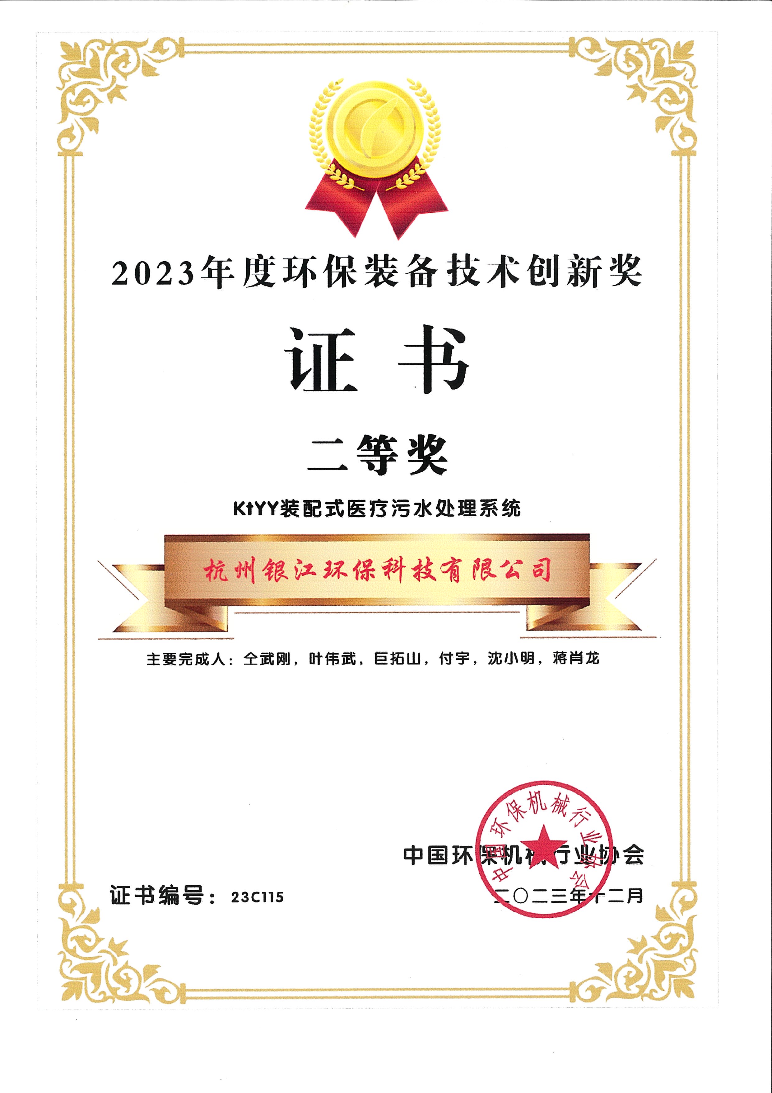 2023年度環(huán)保裝備技術(shù)創(chuàng)新獎(jiǎng)二等獎(jiǎng)