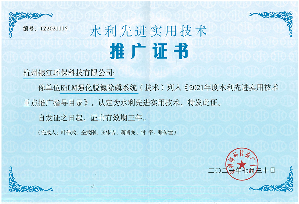 浙江省水利先進(jìn)適用技術(shù)(產(chǎn)品)推廣證書