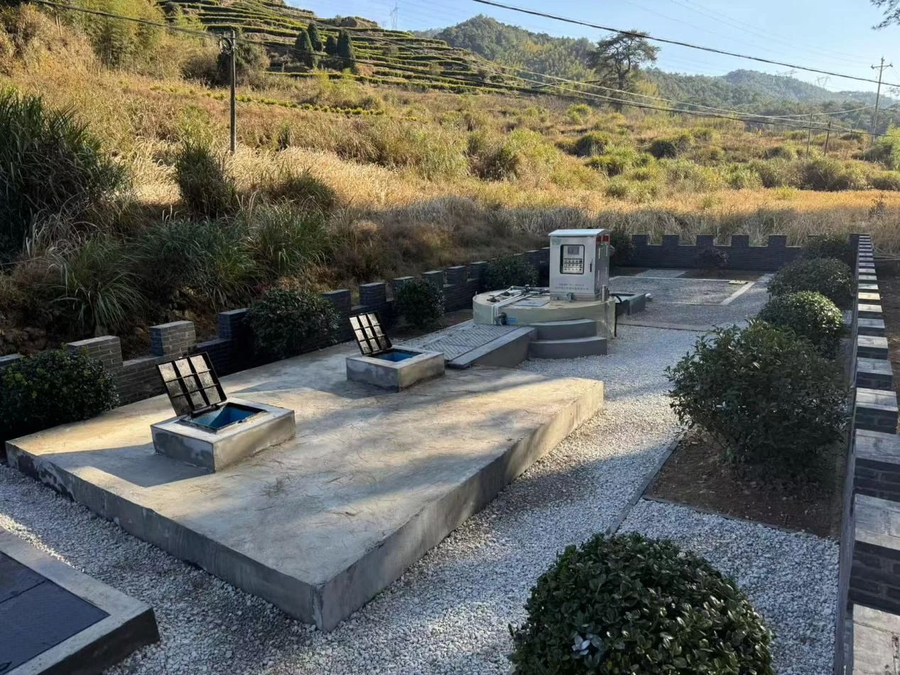 浙江省麗水市景寧畬族自治縣景寧縣深垟村的農(nóng)村生活污水處理30噸/天,核心工藝是采用MABR透氧膜將氧氣傳遞至附著生長的生物膜,實現(xiàn)同步硝化反硝化,去除有機物降低氨氮,出水導(dǎo)入二沉池進行泥水分離,分離后的上清液經(jīng)過紫外線消毒殺滅病菌微生物后流入人工濕地,在人工濕地微生物及植物吸收的作用下進一步脫氮除磷,最后達標(biāo)排入周邊水體,出水達到《農(nóng)村生活污水集中處理設(shè)施水污染物排放標(biāo)準(zhǔn)》(DB33973-2021)?中的二級標(biāo)準(zhǔn),目前已順利通過項目竣工驗收。