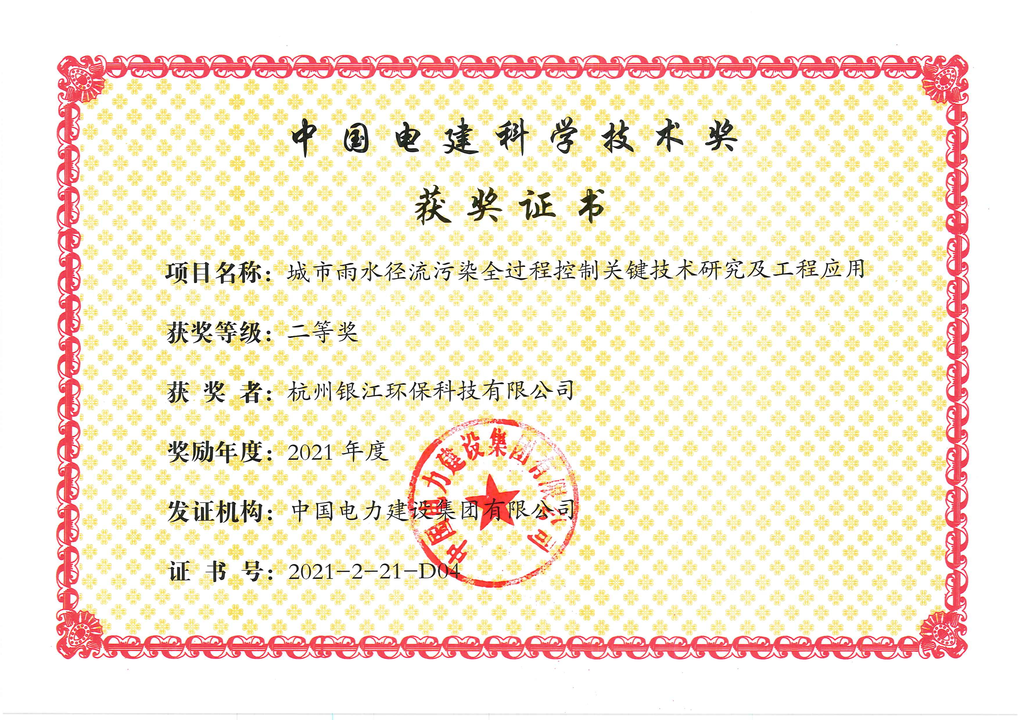 銀江環(huán)保獲中國電建科學(xué)技術(shù)二等獎(jiǎng)