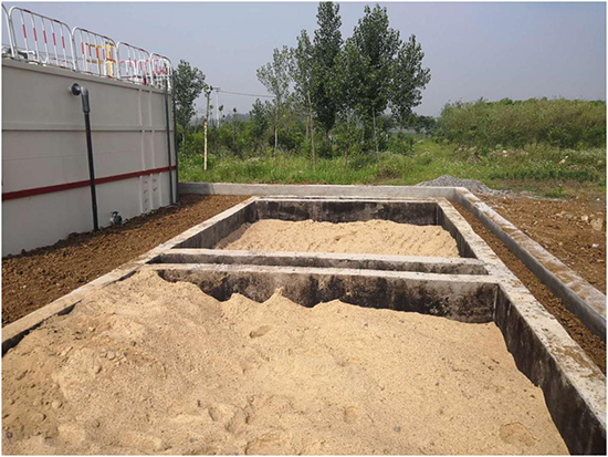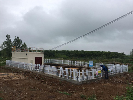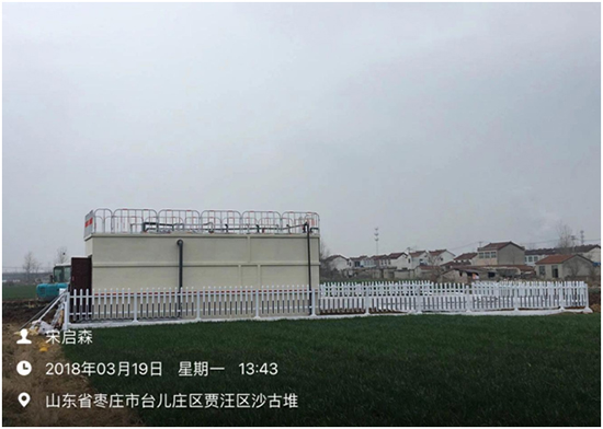 (5)沙古堆村:該終端為地上式,設計污水處理水量為50噸/天,于2017年12月19日進場施工,2018年1月23日設備安裝調(diào)試完成,經(jīng)處理后生活污水達到《城鎮(zhèn)污水處理廠污染物排放標準》(GB18918-2002)一級A標準,出水外排,終端總占地面積187平方米。