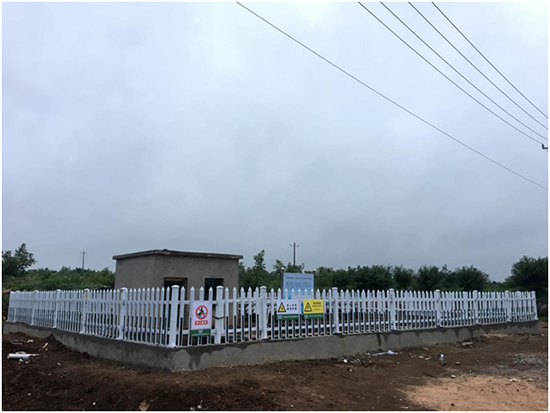 (3)小吳村:該終端為地上式,設計污水處理水量為80噸/天,于2017年10月18日進場施工,2018年1月13日設備安裝調(diào)試完成,經(jīng)處理后生活污水達到《城鎮(zhèn)污水處理廠污染物排放標準》(GB18918-2002)一級A標準,出水外排,終端總占地面積248平方米。