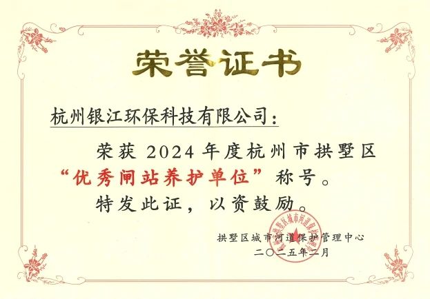 銀江環(huán)保運維團隊兢兢業(yè)業(yè)養(yǎng)護拱墅區(qū)閘站,榮獲2024年“優(yōu)秀閘站養(yǎng)護單位”稱號!