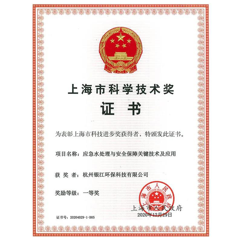2020年度上海市科學(xué)技術(shù)獎近日公布,銀江環(huán)保與同濟大學(xué)、上海市政工程設(shè)計研究總院聯(lián)合申報的《應(yīng)急水處理與安全保障關(guān)鍵技術(shù)及應(yīng)用》榮獲科技進步獎一等獎。