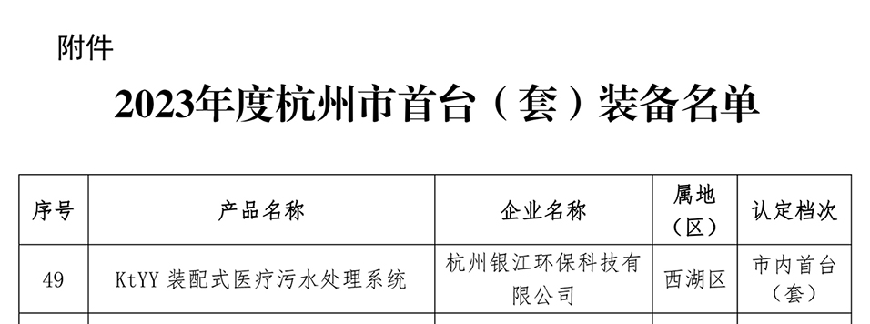 銀江環(huán)保水處理系統(tǒng)入選2023年度杭州市首臺(套)裝備發(fā)布日期:2024-02-05
